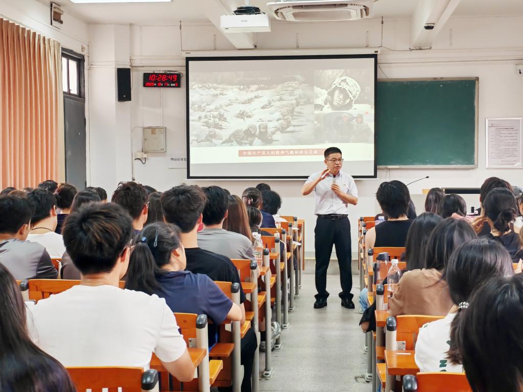党委书记罗胜京以“中国共产党人精神谱系的百年赓续”为主题,为2025级服装与服饰设计专业、表演专业百余名本科新生讲授了秋季学期第一堂思想政治理论课。
